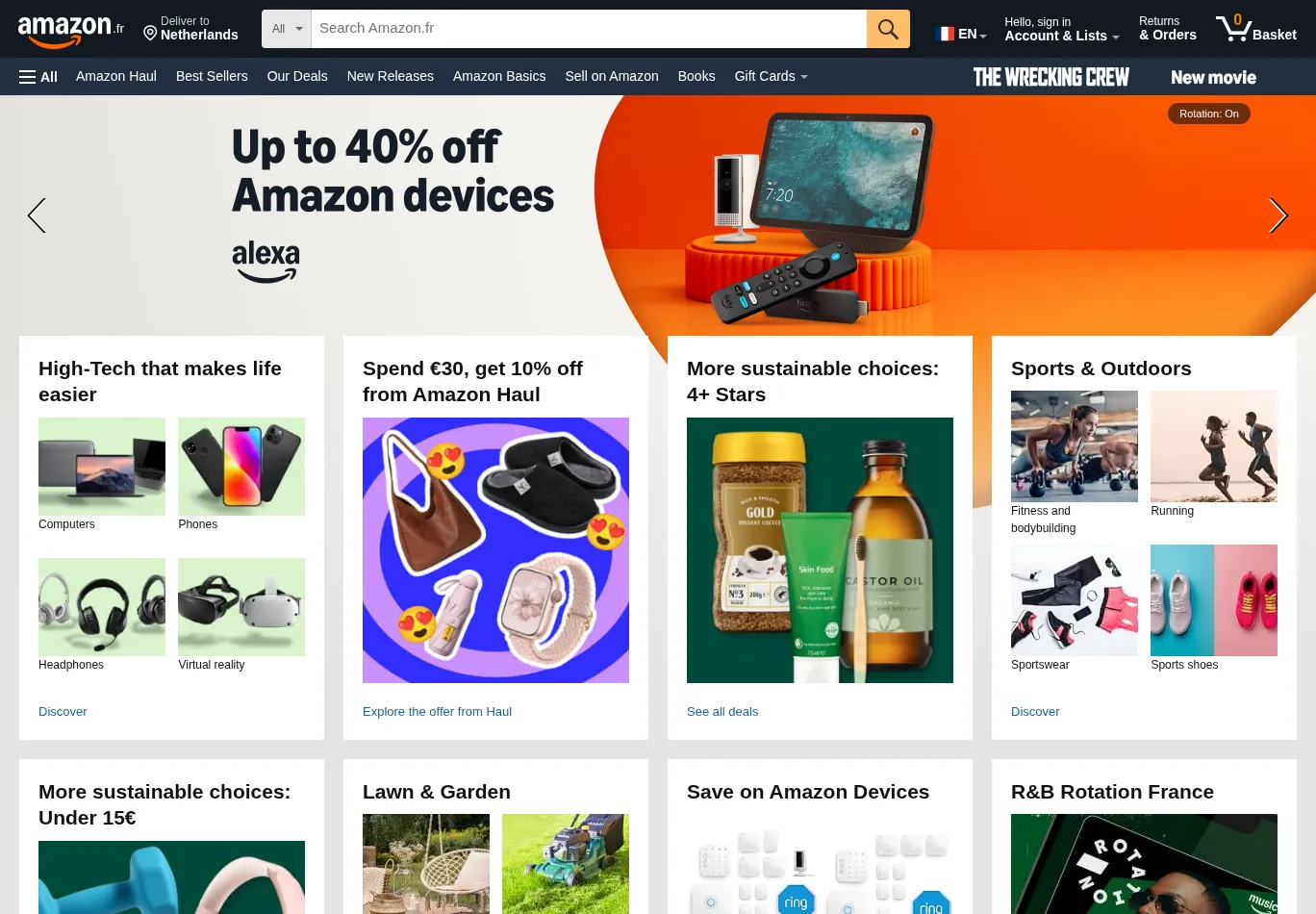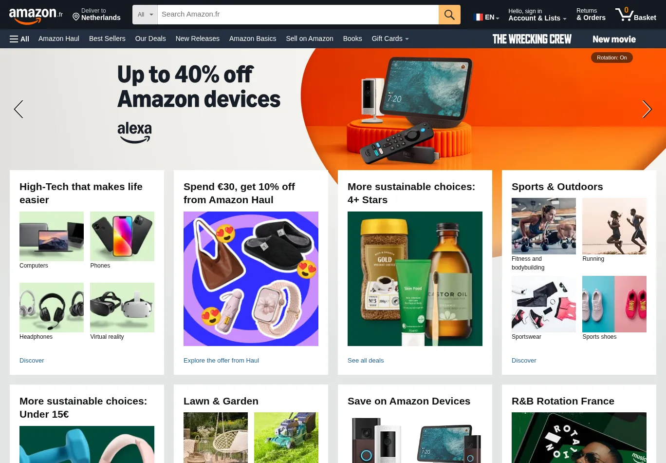 | Title: Amazon.fr: books, DVDs, video games, music, high-tech, computers, toys, clothing, shoes, sports, DIY, home, beauty, childcare, groceries and more! |