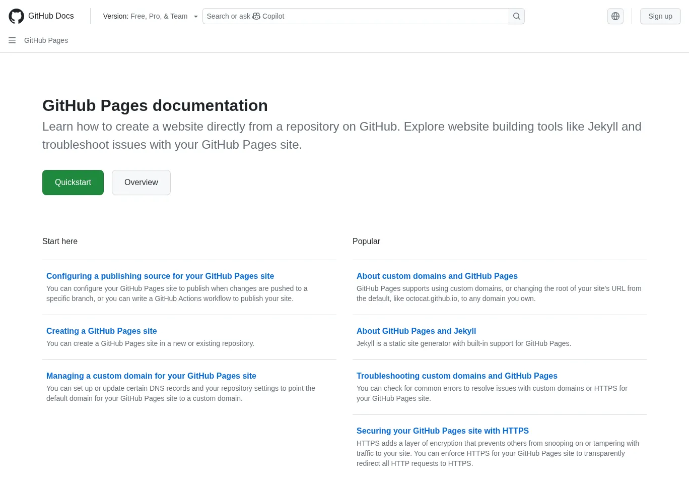 "https://docs.github.com/en/pages",