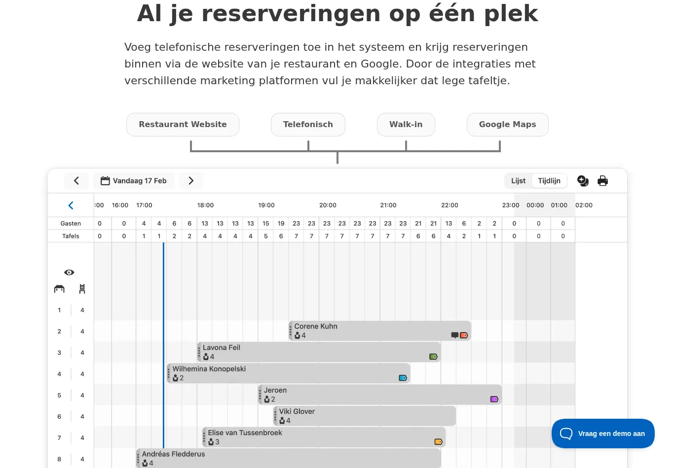 | Top 25 Nouns: reserveringen behandelen gast restaurant restaurants website activiteiten basis belsysteem dagen gasten google integraties maand minuten overzicht proefperiode reserveerwidget support systeem updates aanbetalingen aantal arrangementen | |