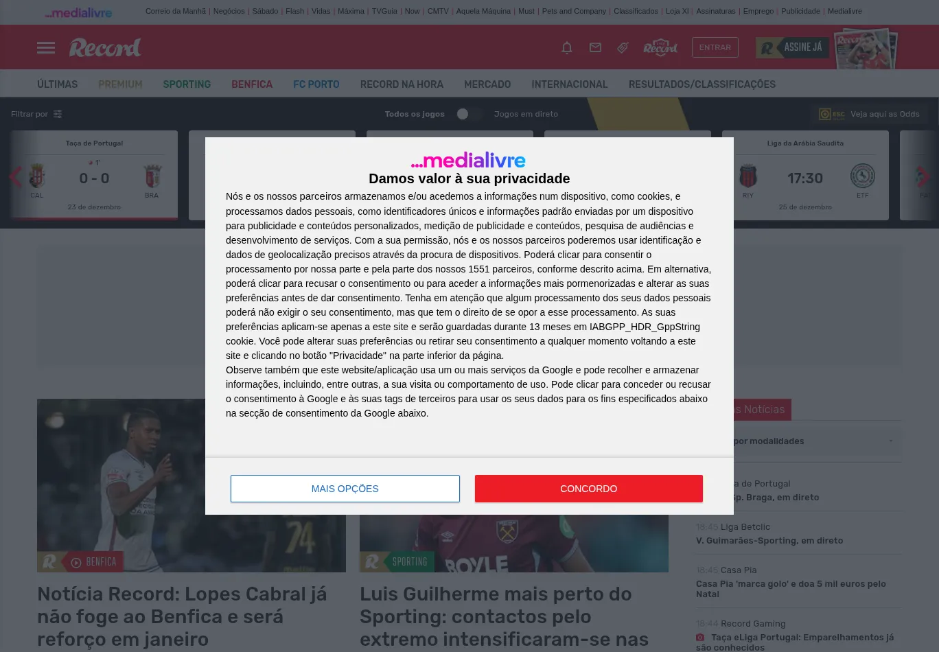 | Title: Record: Tudo sobre desporto. Futebol, mercado, modalidades, resultados e classificações |