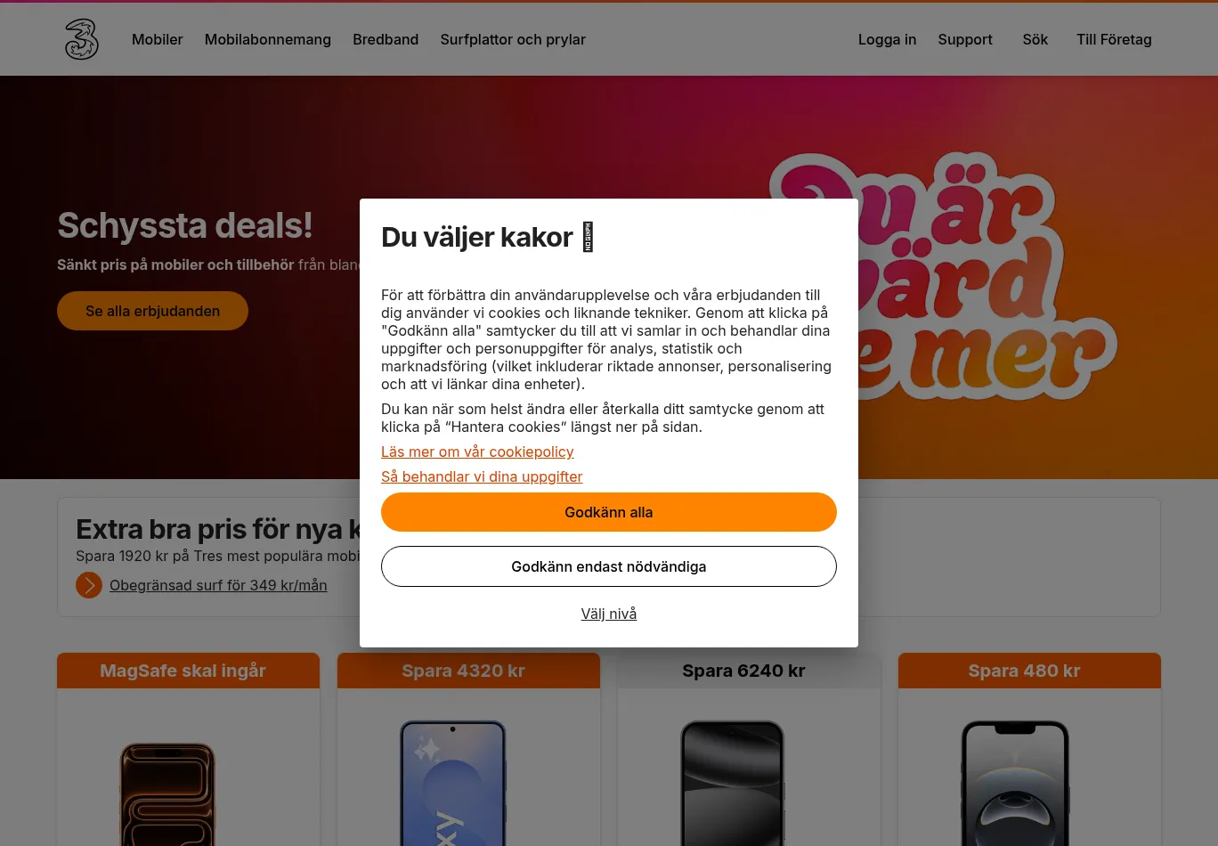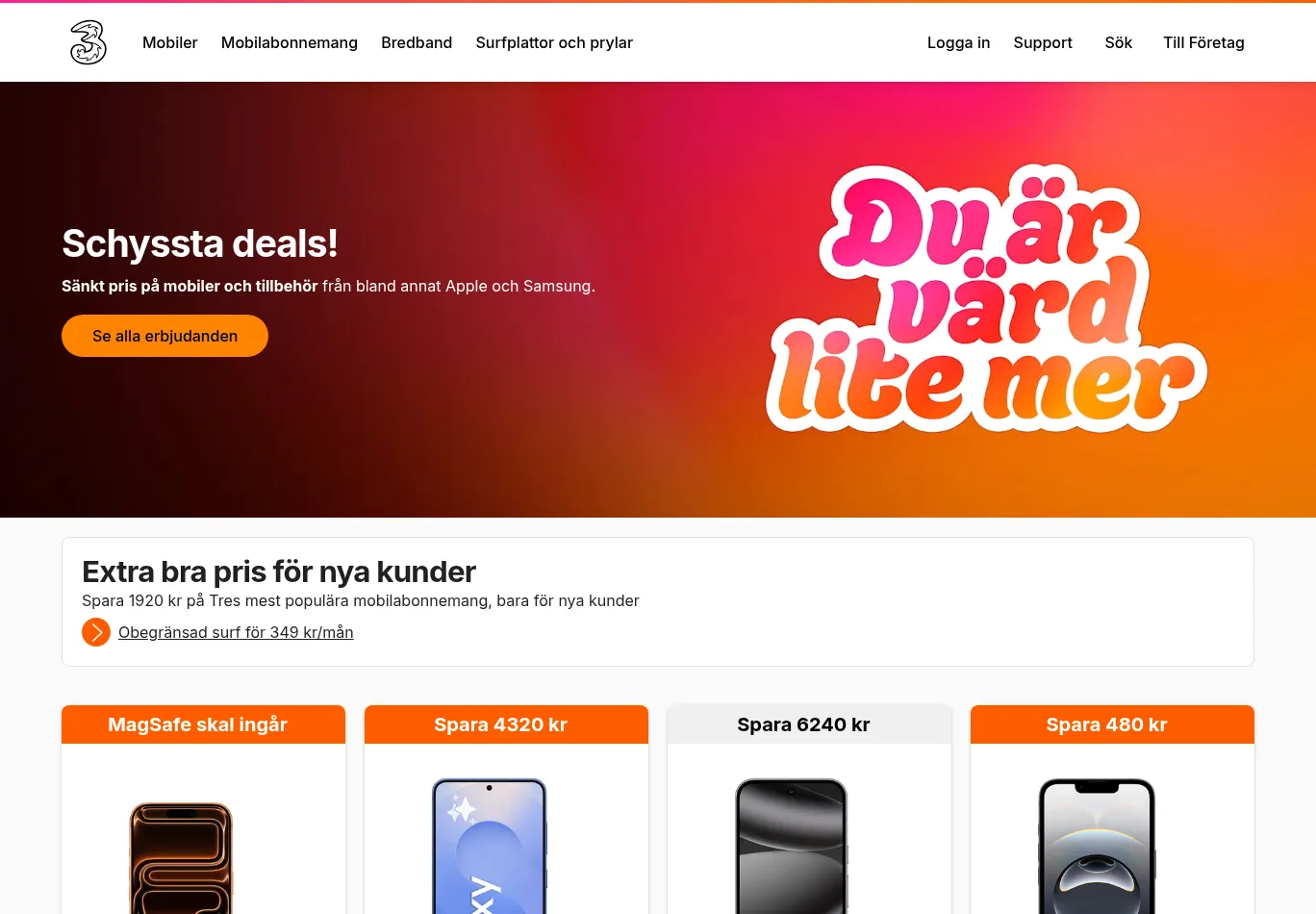 | Title: Tre Sverige - Över 2,8 miljoner kunder | Tre |