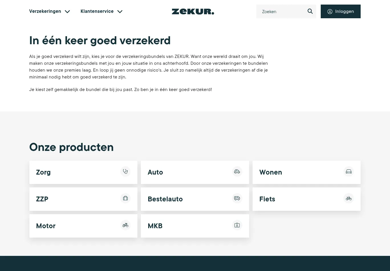| Description: Met de verzekeringsbundels van ZEKUR ben je in één keer goed verzekerd. ZEKUR verzekert je zorgkosten, huis, spullen, auto, motor, fiets en bedrijf. |